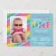 Celebrate the big ONE with this cute rainbow theme first birthday photo invitation. Cute rainbow heart detail. Easy to customise design, add your little one's photo and your custom text.
