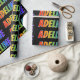 This fun, multicolored, vibrant wrapping paper design features the common first name "ADELINE" having a colourful rainbow spectrum like colouring pattern. The background is coloured black. Colourful wrapping paper like this might be a fun way to wrap a gift being given to somebody named Adeline. [~Z0000354]