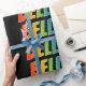 This vibrant, exciting, multicolored wrapping paper design features the common first name "BELLA" having a colourful rainbow spectrum gradient inspired colouring pattern. The background is coloured black. Vibrant wrapping paper like this might be a fun way to wrap a present or gift being given to somebody named Bella. [~Z0000354]