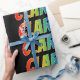 This exciting, vibrant, fun wrapping paper design features the common first name "CLARA" having a colourful rainbow spectrum inspired colouring pattern. It also features a black coloured background. Exciting wrapping paper like this might be a fun way to wrap a gift or present being given to somebody named Clara. [~Z0000354]