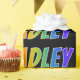This vibrant, multicolored, exciting wrapping paper design features the common first name "HADLEY" having a colourful rainbow spectrum gradient like colouring pattern. It also features a black coloured background. Vibrant wrapping paper like this might be a fun way to wrap a gift being given to somebody named Hadley. [~Z0000354]