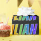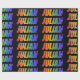 This exciting, multicolored, vibrant wrapping paper design features the common first name "JULIAN" having a colourful rainbow spectrum inspired colouring pattern. It also features a black coloured background. Colourful wrapping paper like this might be a fun way to wrap a gift or present being given to somebody named Julian. [~Z0000354]