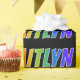 This multicolored, vibrant, fun wrapping paper design features the common first name "KAITLYN" having a colourful rainbow spectrum inspired colouring pattern. The background is coloured black. Exciting wrapping paper like this might be a fun way to wrap a gift being given to somebody named Kaitlyn. [~Z0000354]