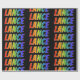 This vibrant, exciting, fun wrapping paper design features the common first name "LANCE" having a colourful rainbow spectrum inspired colouring pattern. It also features a black coloured background. Exciting wrapping paper like this might be a fun way to wrap a gift being given to somebody named Lance. [~Z0000354]