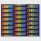 This exciting, fun, multicolored wrapping paper design features the common first name "LANDON" having a colourful rainbow spectrum like colouring pattern. The background is coloured black. Vibrant wrapping paper like this might be fun to use when giving a present or gift to somebody named Landon. [~Z0000354]