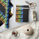 This vibrant, exciting, fun wrapping paper design features the common first name "LISA" having a colourful rainbow spectrum gradient like colouring pattern. The background is coloured black. Vibrant wrapping paper like this might be a fun way to wrap a present or gift being given to somebody named Lisa. [~Z0000354]