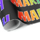 This vibrant, multicolored, fun wrapping paper design features the common first name "MARIAH" having a colourful rainbow spectrum like colouring pattern. The background is coloured black. Exciting wrapping paper like this might be fun to use when giving a present or gift to somebody named Mariah. [~Z0000354]