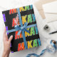 This fun, vibrant, multicolored wrapping paper design features the common first name "MIKAYLA" having a colourful rainbow spectrum gradient like colouring pattern. The background is coloured black. Exciting wrapping paper like this might be a fun way to wrap a gift or present being given to somebody named Mikayla. [~Z0000354]