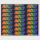 This multicolored, vibrant, fun wrapping paper design features the common first name "MOLLY" having a colourful rainbow spectrum gradient inspired colouring pattern. The background is coloured black. Colourful wrapping paper like this might be fun to use when giving a present to somebody named Molly. [~Z0000354]