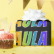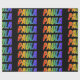 This vibrant, exciting, multicolored wrapping paper design features the common first name "PAULA" having a colourful rainbow spectrum gradient inspired colouring pattern. The background is coloured black. Colourful wrapping paper like this might be fun to use when giving a gift or present to somebody named Paula. [~Z0000354]