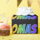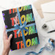 This vibrant, multicolored, exciting wrapping paper design features the common first name "THOMAS" having a colourful rainbow spectrum inspired colouring pattern. The background is coloured black. Vibrant wrapping paper like this might be a fun way to wrap a gift being given to somebody named Thomas. [~Z0000354]
