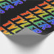 This exciting, fun, vibrant wrapping paper design features the common first name "TYLER" having a colourful rainbow spectrum gradient inspired colouring pattern. The background is coloured black. Colourful wrapping paper like this might be a fun way to wrap a present or gift being given to somebody named Tyler. [~Z0000354]