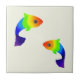 Pretty pair of rainbow fish on a ceramic tile with an off-white background