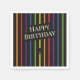 A minimalistic black birthday napkins adorned with rainbow stripes and a candle. It can be personalised with the name of the birthday celebrant.