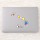 This LGBTQ pride design has an outline shape of the state Hawaii with a rippling rainbow stripe flag.