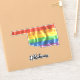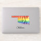 This LGBTQ pride design has an outline shape of the state Oklahoma with a rippling rainbow stripe flag.