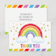 Rainbow design features a colourful rainbow, gold glitter stars and confetti (not real glitter). Type your own thank you note or delete for cards with blank back to handwrite your own personal message. To access advanced editing tools, please go to “Personalise”, scroll down and press the "click to customise further" link.