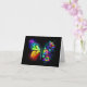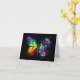 Rainbow, luminous, artistically painted monarch butterfly with bouquet of iridescent, bright, luminescent roses on black background. Rainbow butterfly.