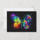 Rainbow, luminous, artistically painted monarch butterfly with bouquet of iridescent, bright, luminescent roses on black background. Rainbow butterfly.