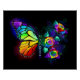 Rainbow, luminous, artistically painted monarch butterfly with bouquet of iridescent, bright, luminescent roses on black background. Rainbow butterfly.
