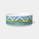 This is a heavy, durable bowl decorated with Tibbies of many colors, the perfect size for hungry/thirsty Tibs. The design is interesting and printing clear.