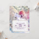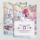 Rainbow galaxy pug riding unicorn in space. invitation
