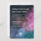 This etherial galaxy wedding invitation is perfect for a modern, whimsical wedding. The design features a colourful cosmic background with stars and modern typography for an "out of this world" event.
