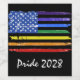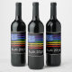 Gay pride black wine labels featuring a distressed American flag with rainbow stripes. Personalise with your text (initially set to "pride") or leave blank.