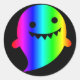 Rainbow Ghost sticker: a cute rainbow coloured ghost. Has bright vivid colours running vertically thru the whole design on a black background which can be customised/changed to any colour. Its a spooky, funny and eye catching design sure to please.