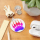 Cartoon style bear paw print. Faux glitter effect applied to the image. Custom key chains.