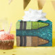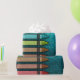 Turquoise blue faux glitter sparkles behind an array of colourful crayons. Cute birthday party accessory features bright rainbow colours. Available in many sparkly colours.