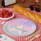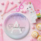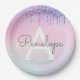 Rainbow Glitter Dripping Glam With Monogram Paper Plate