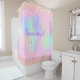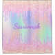 A trendy holographic coloured background with unicorn and rainbow pastel colours in pink, purple, rose gold, mint green. Decorated with faux glitter drips in rose gold, pink and purple. Personalise and add a name, written with a girly modern hand lettered style script. Purple coloured letters.
