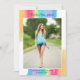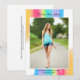 Beautiful watercolor rainbow graduation announcement with pretty, artistic paint strokes full of bright colour and your senior photograph in the centre. These colourful Class of 2024 cards are perfect for an artistic senior girl. Personalise this pretty card with your high school or college name.