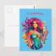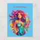 Rainbow-haired Mermaid With Cocktail Art Illustration. Big hair sea siren with multicolored tresses holding a cocktail in her hand as the sea breeze fans her hair out behind her. To customise