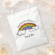 Do you have a small business or love giving handmade gifts for family and friends? This colourful and cute rainbow bag would make the perfect addition to the packing of your item. A bold colourful and black outline rainbow flanked with puffy white clouds will bring a smile to anyone's face. Customise it with your own name, change the background colour to match your individual needs.