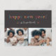 Colorful, joyful Happy New Year! in rainbow stencil letters with a modern dark grey background.