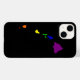 The shape of the islands of Hawaii in a rainbow of colours against black. You can change background colour. Add a custom text message to create your own personalised gift.