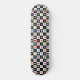An on-trend black and white checkerboard patterned blanket with a rainbow of colored hearts give this skateboard deck a fun vibe.