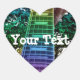Rainbow Heart Guitar Notes Personalised Music Sticker. Rainbow colours on a guitar neck with fingers playing it and crazy psychedelic rainbow coloured musical notes around it. Customise the text at the top for your name, band name, label or a phrase you like to personalise. A great gift for your favourite guitar player, musician or music lover.