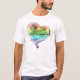This basic T has a lot to say about equal treatment for all of man (and woman) kind) "...liberty and justice for all." Distressed rainbow heart in the background is evidence of the LGBTQ community's battle for equality.