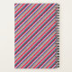 A colourful rainbow heart is the main focus of this spiral-bound notebook. There is space to customise the design in the lower right-hand corner. The back of the journal features a coordinating pattern of red, blue, orange, pink, and green stripes. This design would be perfect for a young girl, perhaps as a birthday or Valentine's Day gift!