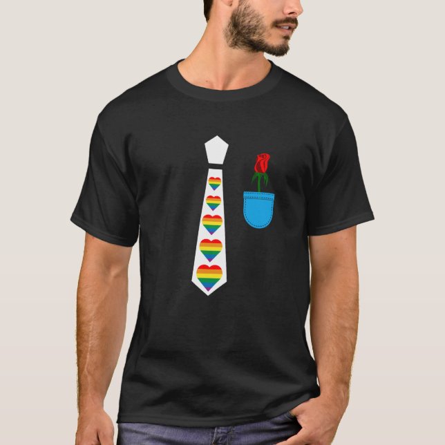 Rainbow heart tie tux costume fake pocket with ros T-Shirt