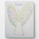 A white light guardian angel has wings folded to create a heart shaped outline. The feathers of the angel's wings also form heart shapes. There is a heart on the angel's chest and a heart hovering over the angel's head like a halo. Painting was rendered with watercolor pencil on paper. Personalise this art with your own text or images using the "Customise It" option. It makes for a great healing gift for a patient or a loved one/ caregiver support!
