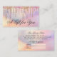 This girly and glamourous gift certificate business card is perfect for a stylish and trendy professional businesswoman. It features faux printed sparkly rainbow colour glitter drips on top of a holographic iridescent foil background. The typography is an elegant cursive script with a modern serif font to match. The colour scheme includes pink, peach, blue, purple, gold, and coral. It's chic, pretty, unique, and luxurious; the perfect way to advertise your business and stylise your marketing and advertisement material for your customers.