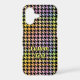 Rainbow houndstooth. Seamless pattern. Custom background colour. Custom text.