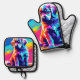 Rainbow Hued Dog Art Oven Mitt & Pot Holder Set