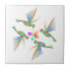 Rainbow Hummingbirds Kissing A Flower Tile