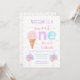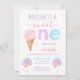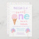This cute invitation features an ice cream cone and balloons in pastel rainbow colours with faux gold foil confetti.