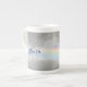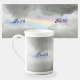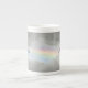 Personalised a Name or affirmations on this beautiful and delicate bone China mug and it will be highlighted beautifully against a grey stormy sky with a heavenly rainbow seen through a break in the grey storm clouds. Give the gift of a personalised rainbow.